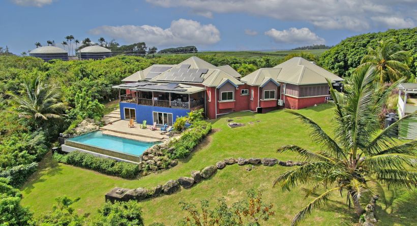 As you enter this breathtaking property, you’ll be captivated by the lush tropical foliage and mature trees surrounding the approximately 65,750 sq. ft. of land, creating a private and eco-friendly sanctuary. The 5,207 sq. ft. home boasts high ceilings that allow natural light to flow freely and cool breezes to sweep through, creating a welcoming and refreshing atmosphere.