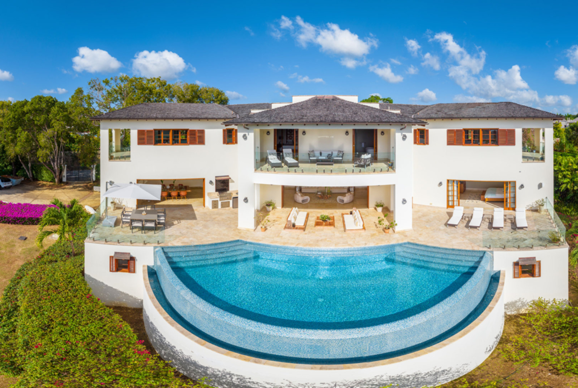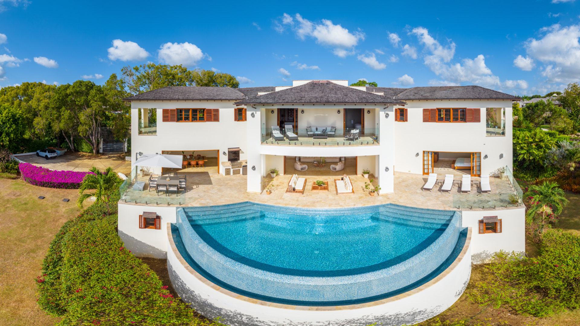 Presenting panoramic sea views and modern, upscale finishes, Fountainhead is an impressive residence available for sale in a prime location within the prestigious Sandy Lane Estate. Nestled on meticulously manicured grounds spanning 1.15 acres, this stunning property offers a generous 14,053 sq. ft. of living space adorned with immaculate finishes and soaring 10-foot ceilings.
